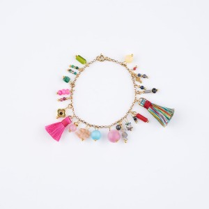 Bransoletka z łańcuszkiem i kolorowymi zawieszkami - kamienie i chwosty