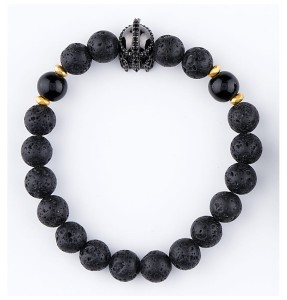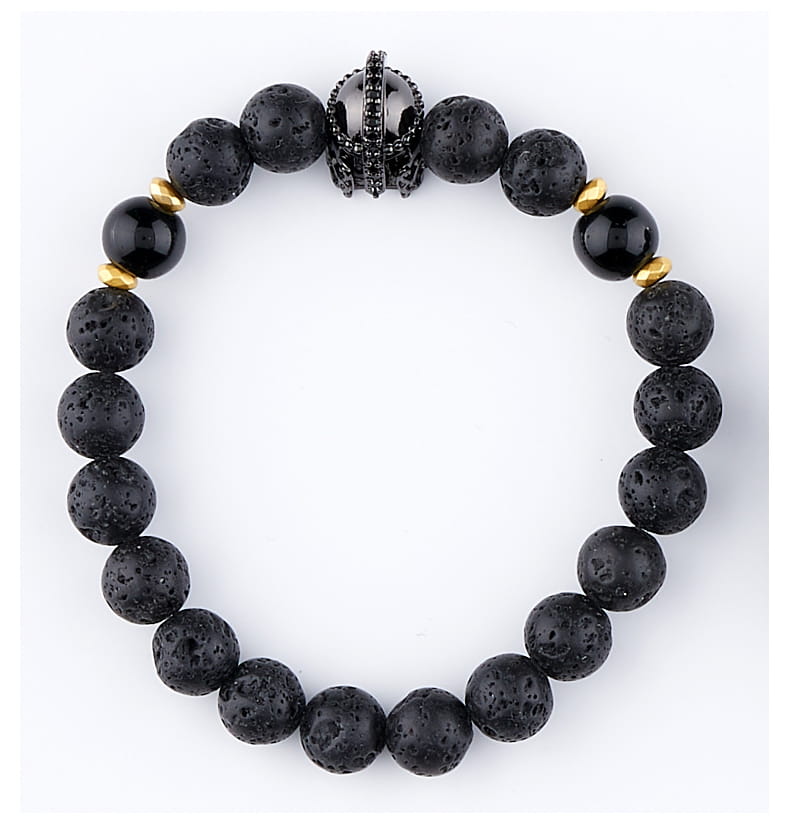Bransoletka z lawy wulkanicznej i onyksów z ozdobnym hełmem