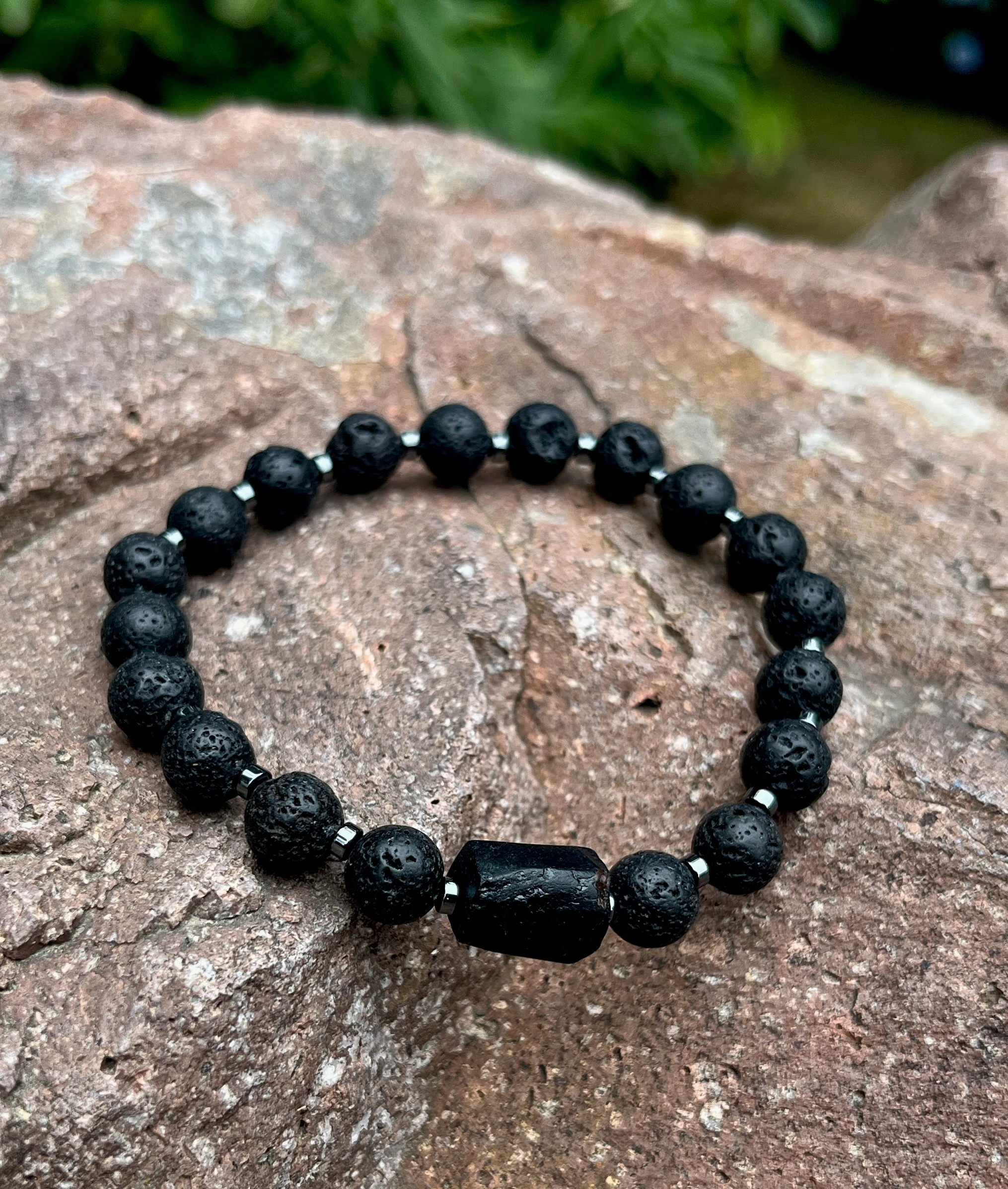 Połączenie surowej energii lawy i tajemniczej siły czarnego turmalinu. Ta bransoletka to coś więcej niż ozdoba – to amulet. Matowe, porowate kulki lawy wulkanicznej zestawiono z nieregularnym, surowym turmalinem i maleńkimi przekładkami z hematytu. Idealna dla tych, którzy cenią prostotę, naturę i moc kamieni. Pasuje zarówno do miejskich stylizacji, jak i wypadów za miasto.