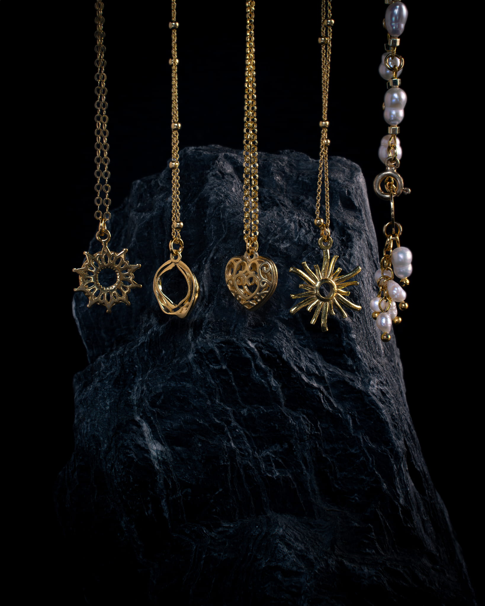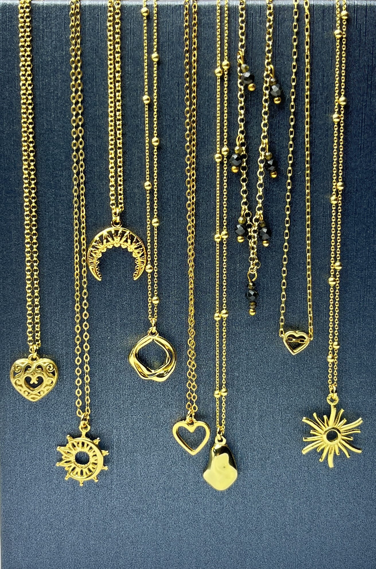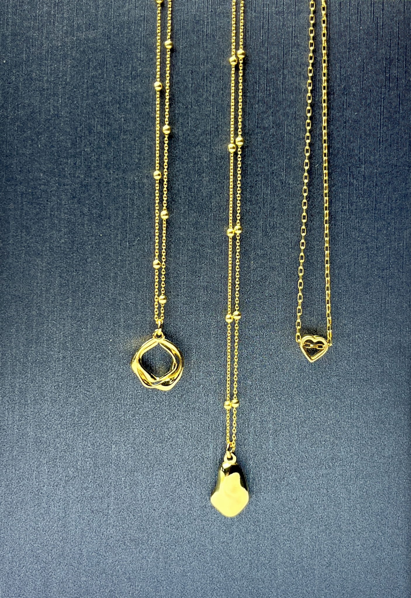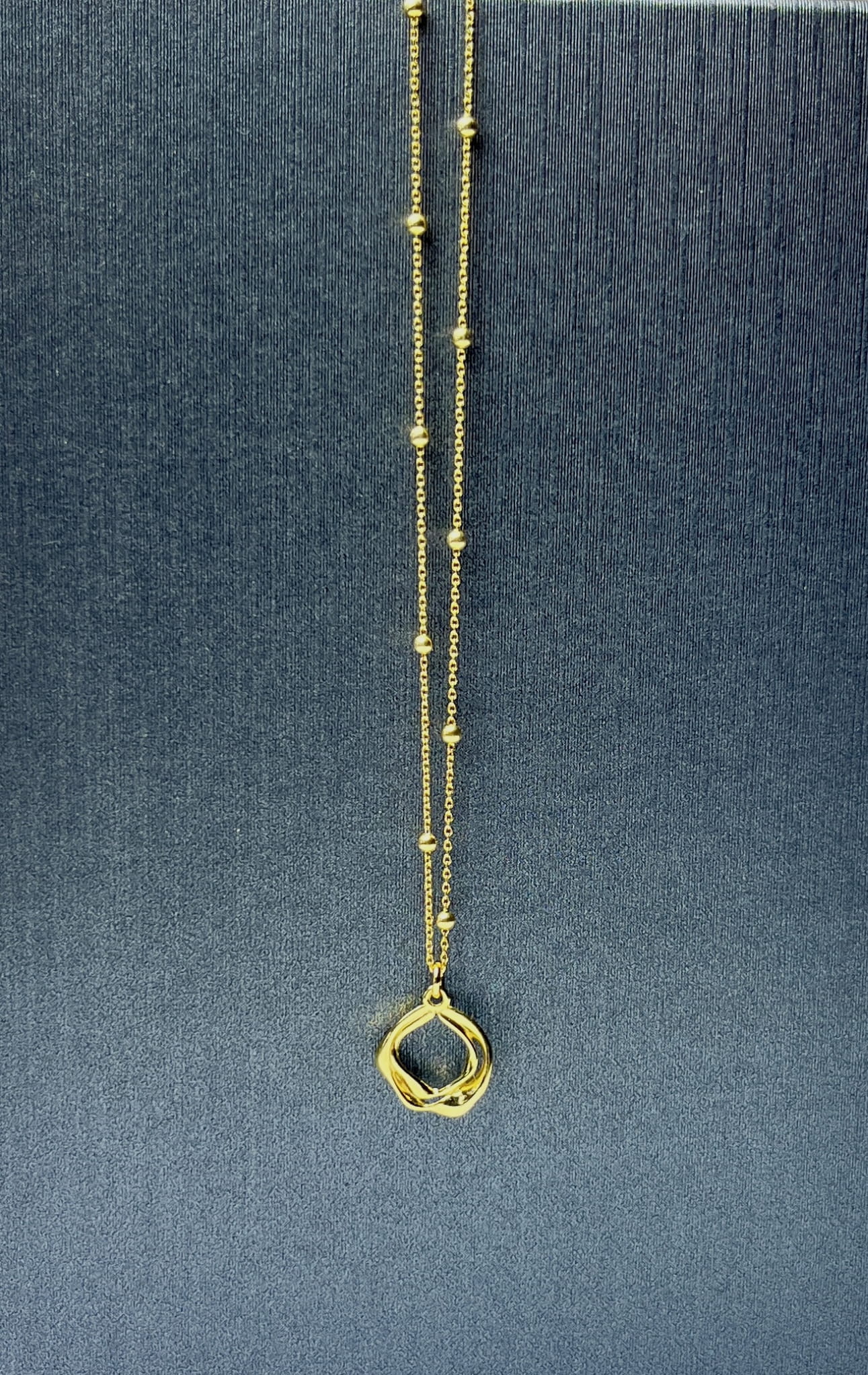 Pozłacany łańcuszek z kuleczkami z zawieszką w nieregularnym kształcie
