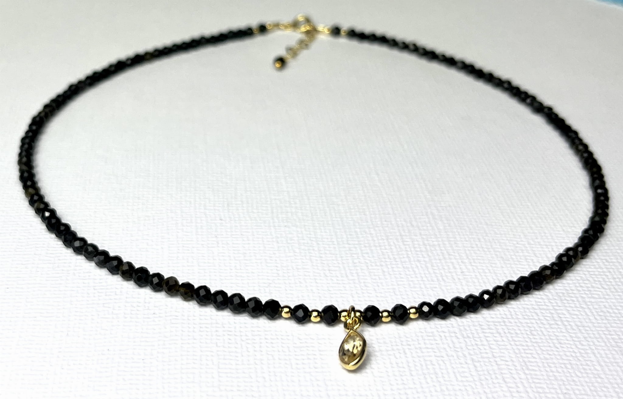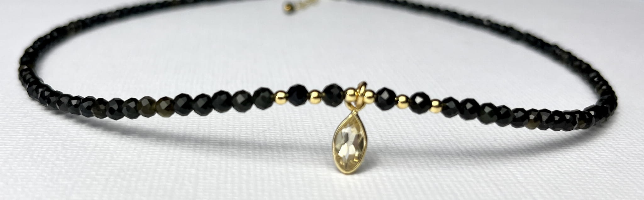 Naszyjnik typu choker z obsydianu złotego z zawieszką z cytrynu