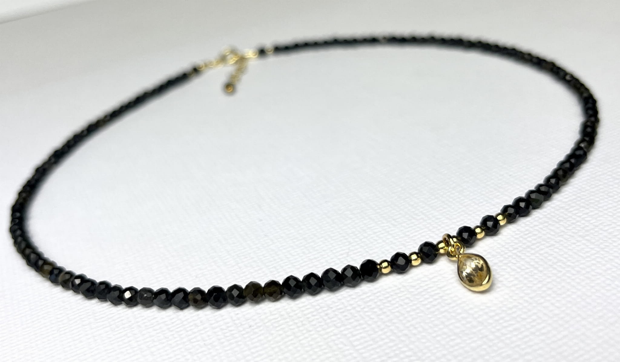 Naszyjnik obsydian złoty z cytrynem w okuciu