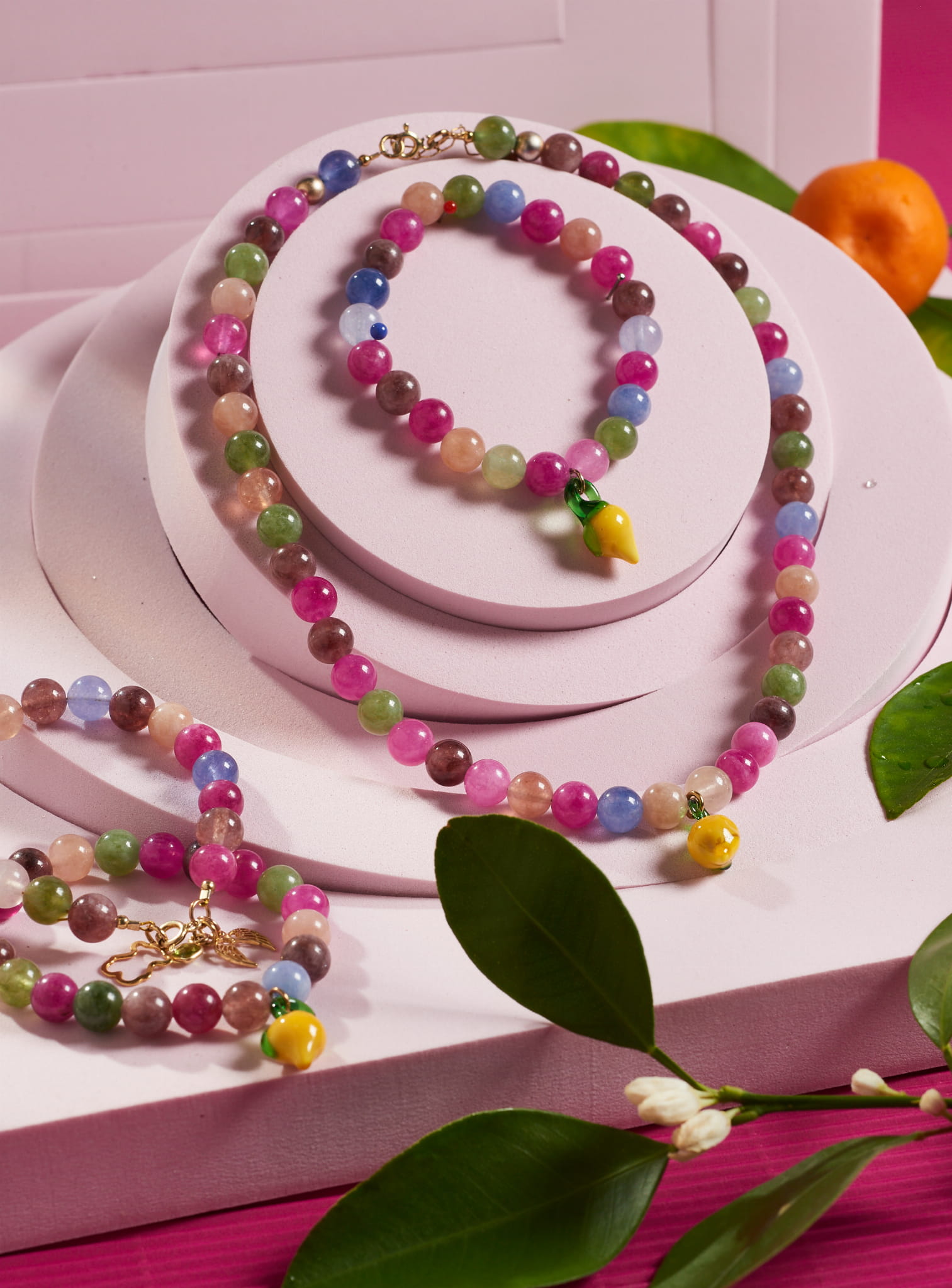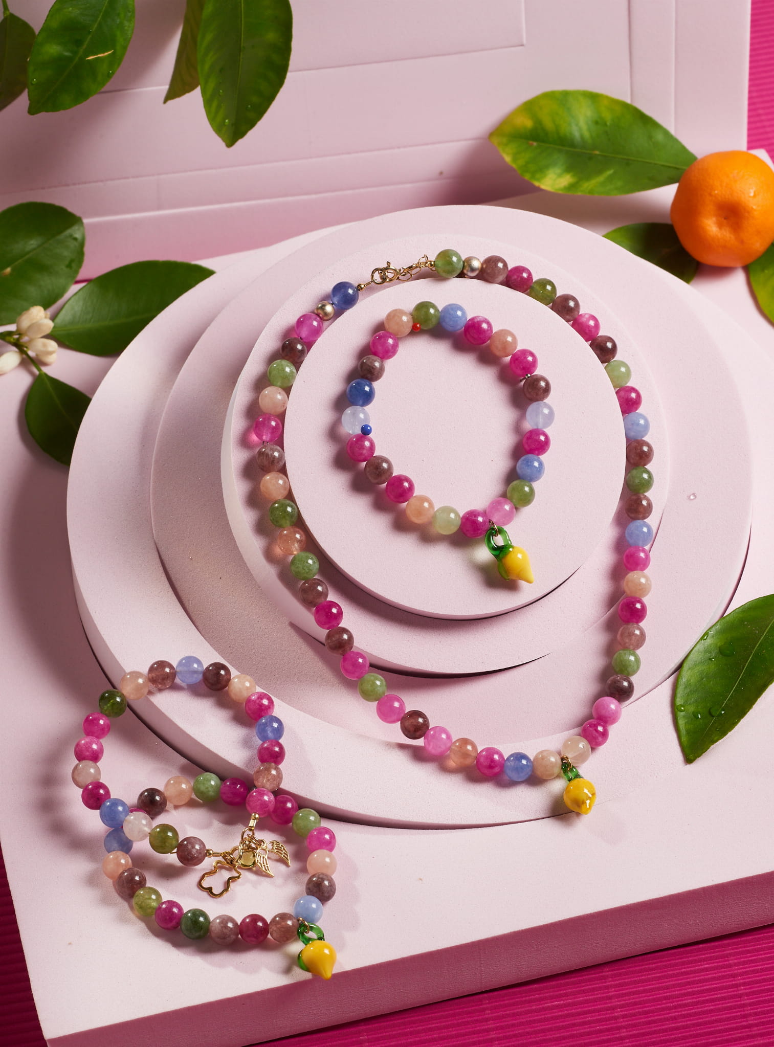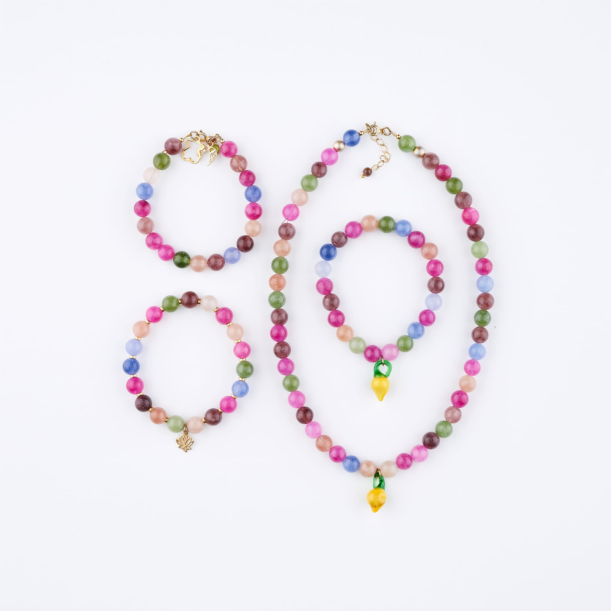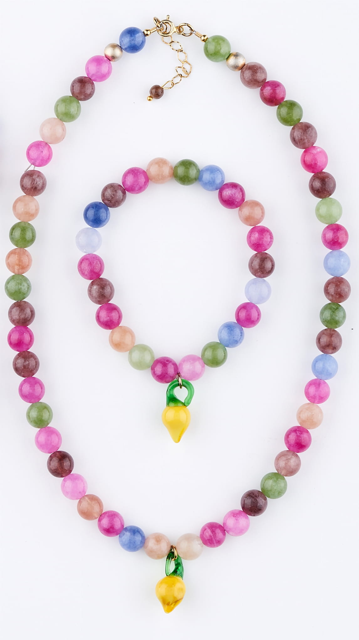 Naszyjnik z kolorowego turmalinu, zakończony zawieszką w kształcie cytrynki. To radosna, lekka biżuteria, która idealnie wpisuje się w letni klimat. Świetna zarówno na co dzień, jak i jako oryginalny prezent.